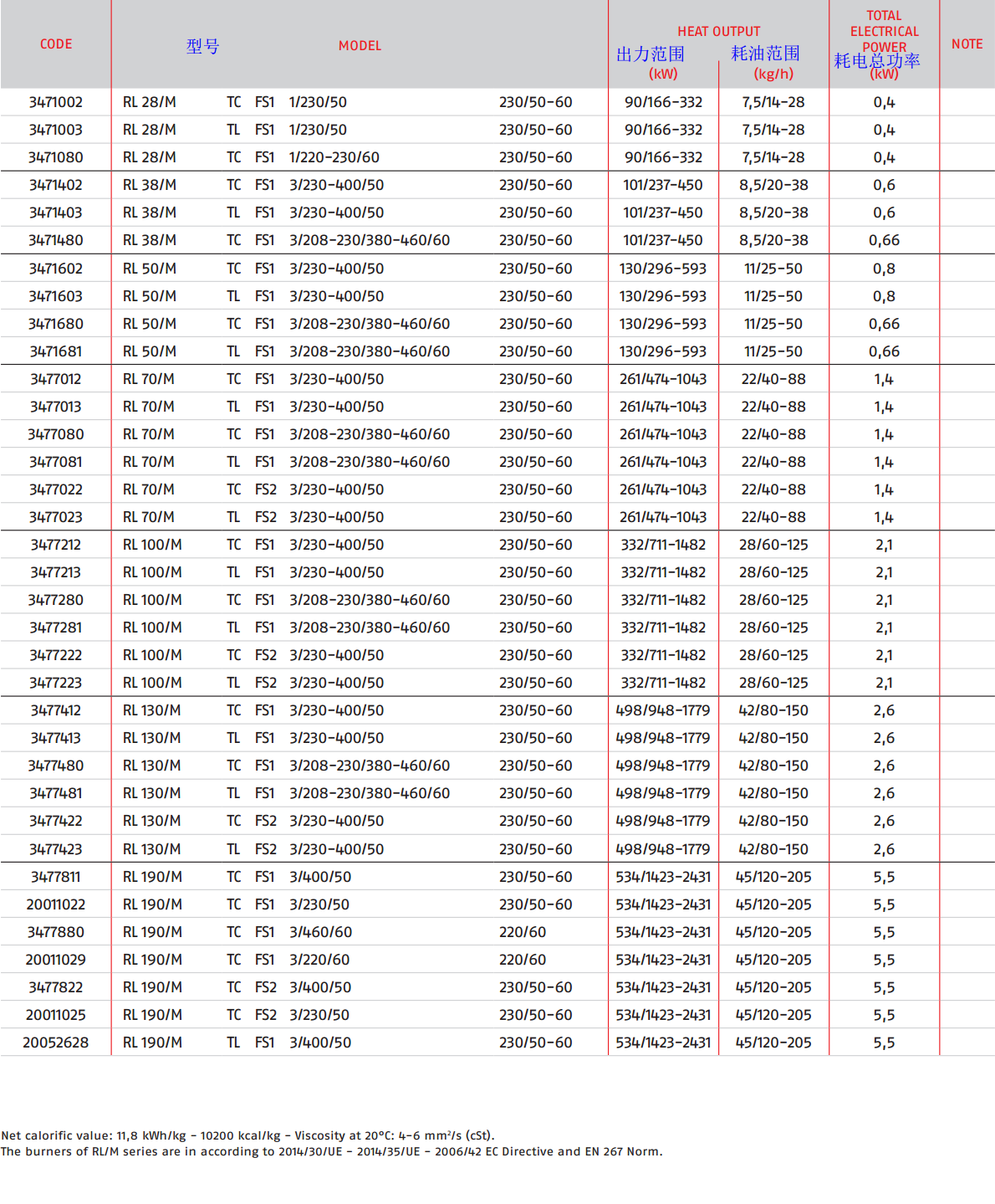 RL28/M RL38/M RL50/M RL70/M RL100/M RL130/M RL190/M